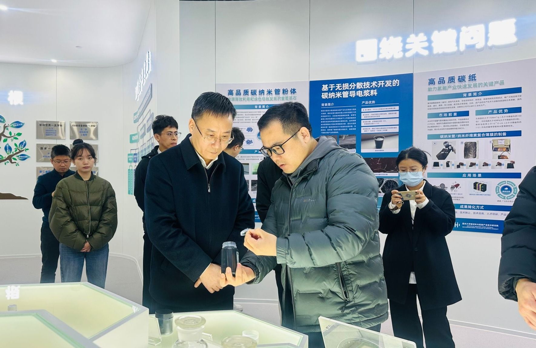 碳氢院常务副院长葛勇杰接待调研组一行,并就碳氢院在海洋领域的科创成果作了详细介绍。葛勇杰副院长汇报了碳氢院近期的科研进展,重点阐述了五项关键技术的突破,包括:碳纳米管粉体、碳纳米管导电浆料、高纯纳米级氢氧化铝及其衍生物、高效太阳能淡化海水技术以及复合碳粉。随后,调研组参观了碳氢院展厅、重点实验室及锂电测试中心,实地考察科研设施建设与项目推进情况。